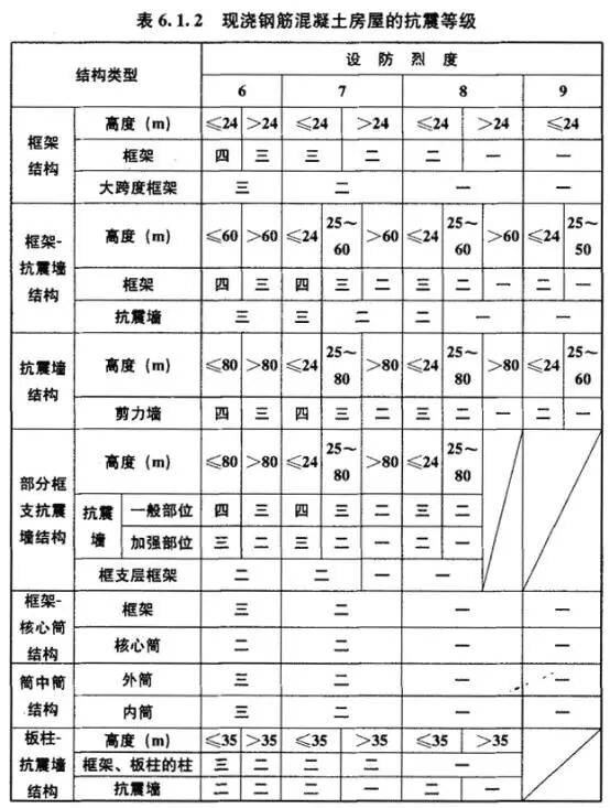 比如说,上海的一栋高层住宅楼,采用剪力墙结构,高度为100米。我们就去查表,上海设防烈度为7度,抗震墙结构高度大于80米,所以是二级。再比如说,济南的一栋高层写字楼,框架核心筒。我们继续查表,济南是6度区,所以框架核心筒的框架部分是三级,核心筒部分是二级。